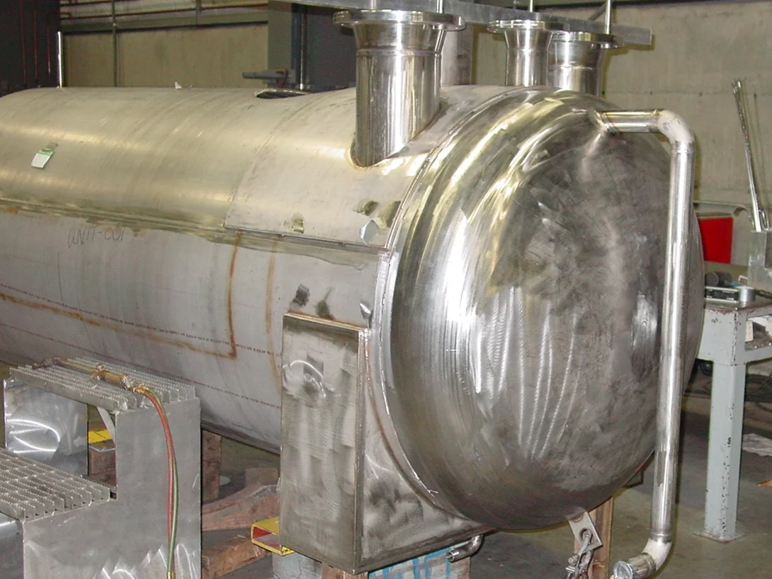 Over the years we've produced a wide variety and sizes of tanks and vessels, from temperature-regulating jacketed vessels to vacuum chambers spanning 12' in diameter and 40' in length. With ASME U, U2 and R stamps, we ensure our vessels and tanks are produced to the highest possible standards.
